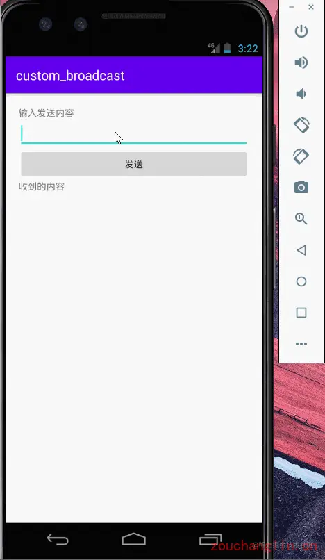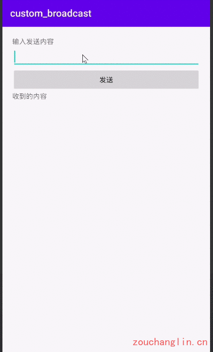 AppReceiver.java 还是和上面的一样,但是现在不在 AndroidManifest.xml 中声明,而是使用动态注册的方式,下面的例子演示了如何在 Activity 创建的动态的注册广播接收者: