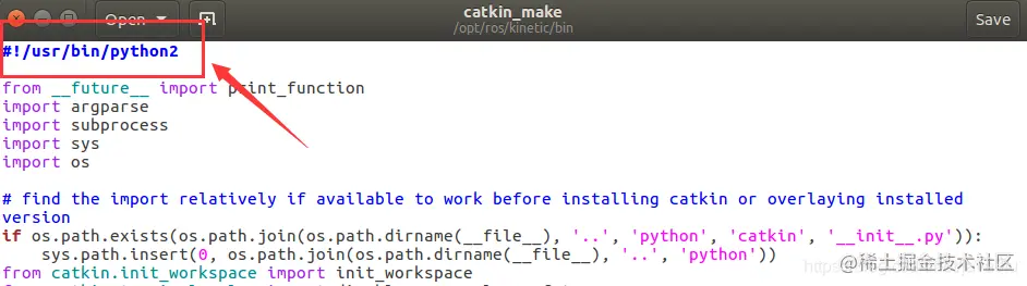 由于catkin_make为系统文件readonly,因此不可以通过vim编辑 2.将python脚本解释器改为