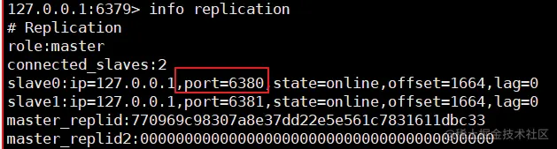 对端口号为6380的服务器执行slaveof命令,使其成为端口号为6379服务器的从机:
