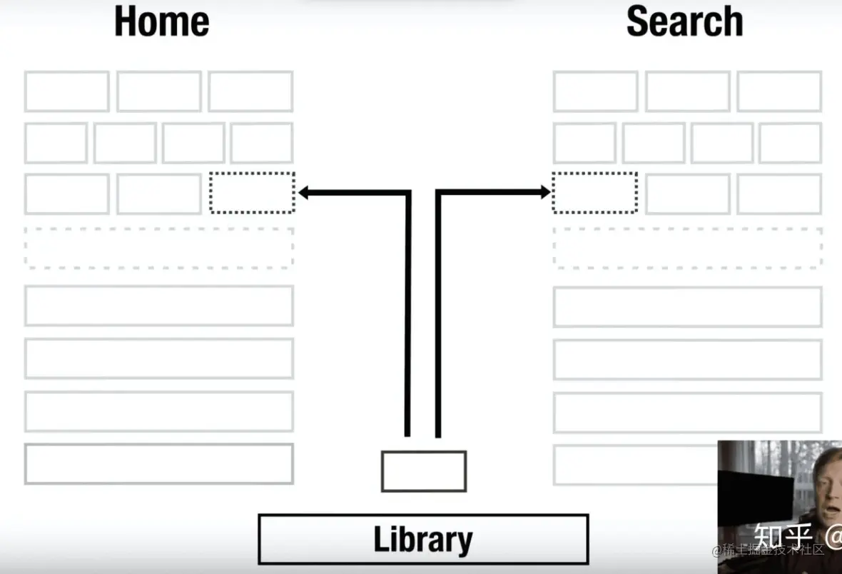 对于项目 Home 与 Search,直接利用 UMD 包复用一个模块。问题是包体积无法达到本地编译时的优化效果,且库之间容易冲突。