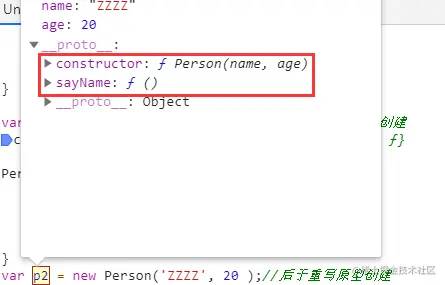 p1 和 p2二者区别就在于通过new关键字创建对象的先后顺序,是先于重写原型创建,还是后于重写原型创建。