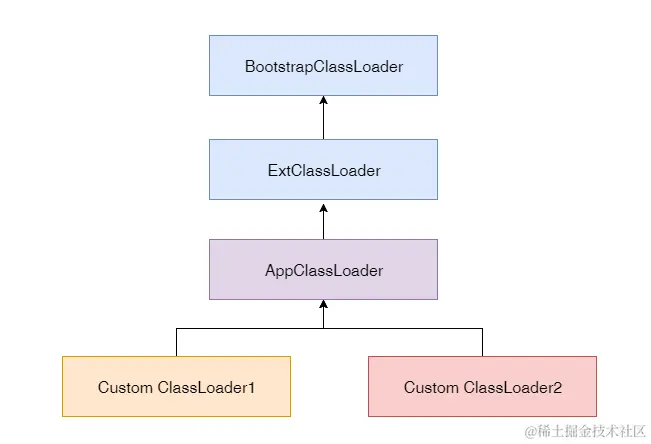 自定义类加载器:负责加载自定义的特殊的类。比如对class文件进行加密后,利用自定义的类加载器进行解密加载。