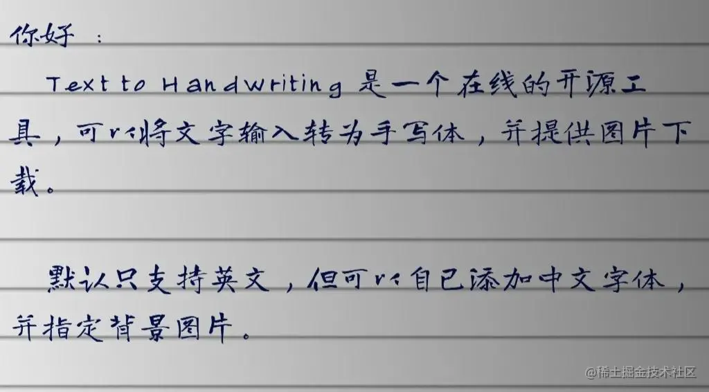 【导语】:Text-to-Handwriting 是一个在线的开源工具,可以将文字输入转为手写体,并提供图片下载。