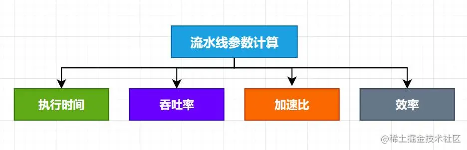 流水线的相关参数计算包括:流水线执行时间计算、流水线吞吐率、流水线加速比、流水线效率。