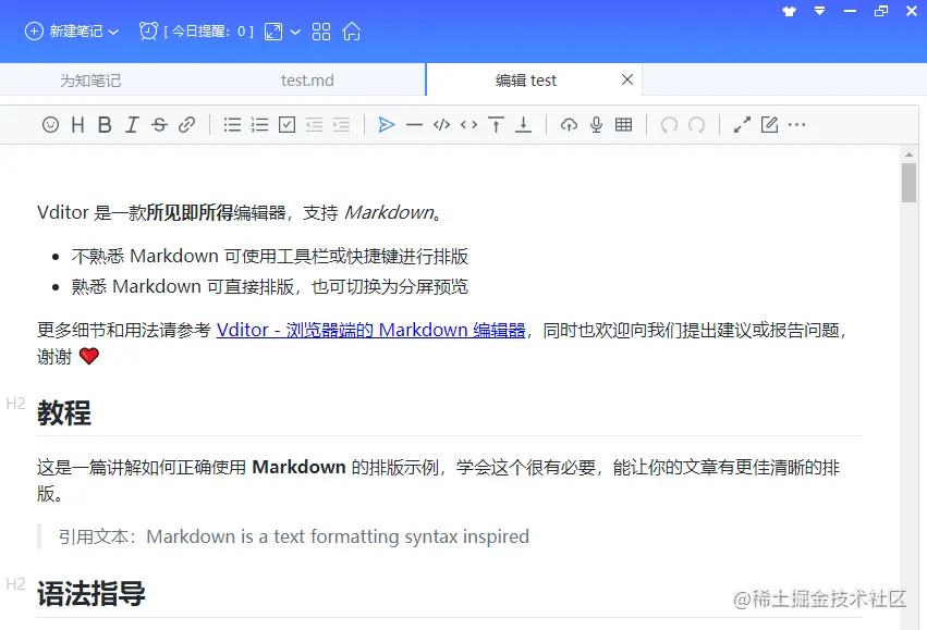 基于Vditor的为知笔记所见即所得markdown编辑器插件