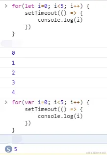 可以看到:会出现两个很有意思的现象: 1)尽管在点击1次tickFive中调用了5次setState,但是界面却显示只点击了1次,点击2次tickFive中调用了10次setState,界面却显示只点击了2次 ...; 2) 5次setState回调函数里 console.log(this.state.count)的值都是一样的。为什么呢?这其实是由于JS语言的特性之一----闭包以及setState异步执行综合作用的结果。每一次点击tickFive,里面的tick会调用5次setState,而tick里每个setState里传入的参数{count: this.state.count}里this.state.count里的值都是该环境里的state的属性count的值,即Class Counter的实例state里的count值。不好理解?看看下面的一道经典面试题,你就会恍然大悟。(PS:鄙人刚开始学习React,暂时没有阅读react源码,完全是从浏览器对于执行JS的执行,以及JS语言方面在理解,如理解有误方面,欢迎批评与指出。后续有时间会阅读源码,了解更多,并保持更新)