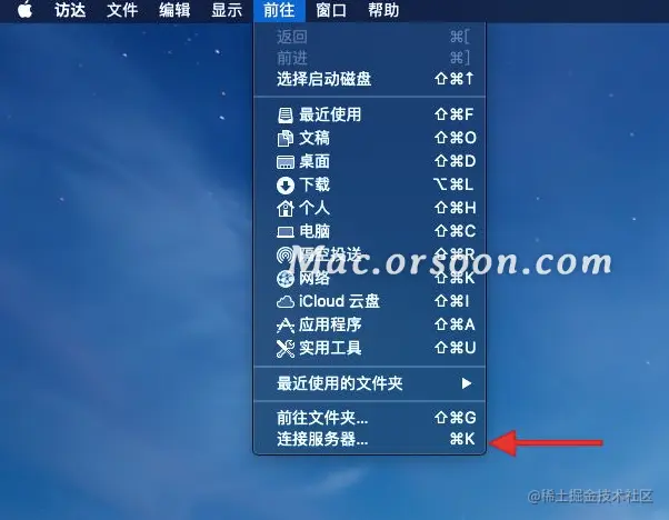 使用Mac电脑连接服务器 Mac小能手 2021-02-10 276 阅读1分钟 具体方法如下 1.首先,点击电脑桌面上方状态栏中的【前往】选项。 2.然后,在跳出的菜单中选择【连接服务器】选项。 3.在连接服务器界面,输入服务器地址,点击【连接】按钮。 4.接下来,选择你登入服务器的身份,输入密码。 5.最后,我们就可以像在访达中管理文件那样简单地访问服务器文件啦。
