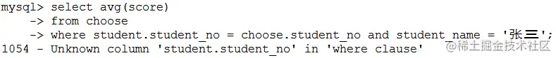 会报错:1054 - Unknown column 'student.student_no' in 'where clause' 这样的查询语句构成的子查询便为相关子查询。