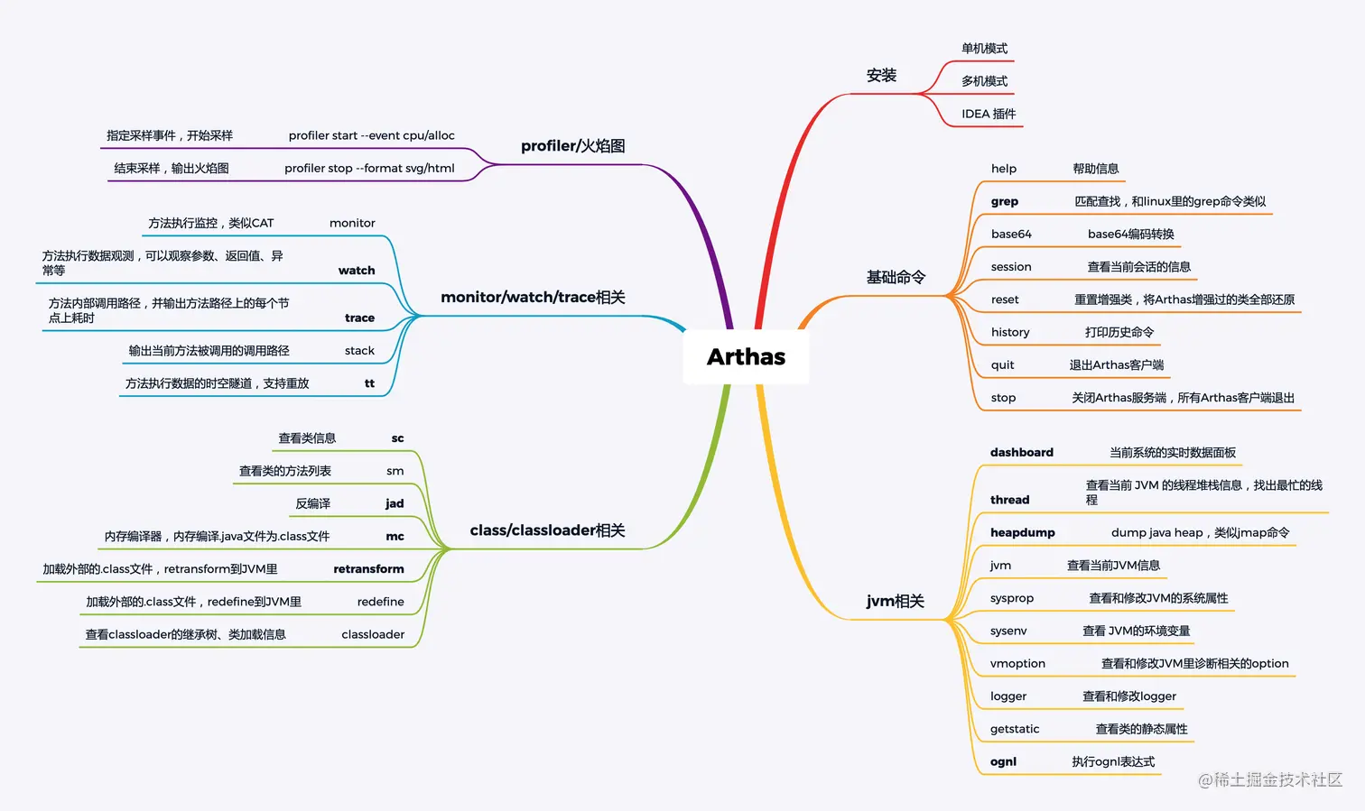 Arthas是C/S模式,多个Client,只有一个Server,目标Java进程只需被 attach 一次。其中bytekit是阿里开源的字节码增强工具包,可以在目标Java进程增强代码,实现monitor/watch/trace等功能。arthas的实现原理主要使用了JVM Attach API、Java Instrumentation 接口、字节码增强等技术。类似的工具还有JProfiler,不过JProfiler收费、界面复杂,相比之下arthas免费开源、易用方便。