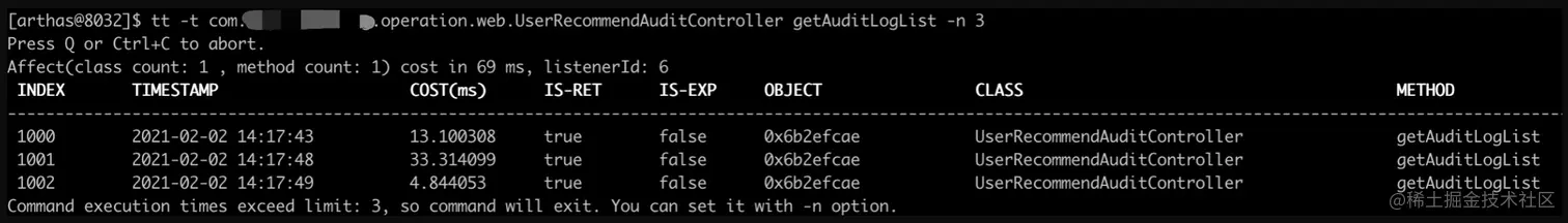 tt -t <类名表达式> <方法名表达式> -n <记录调用次数>