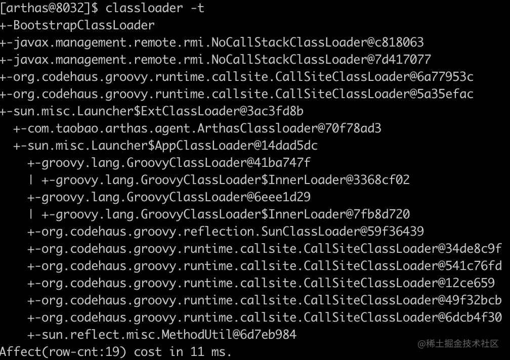 查看ClassLoader的继承树(使用classloader命令可以查询类来自哪个jar、由哪个ClassLoader加载):