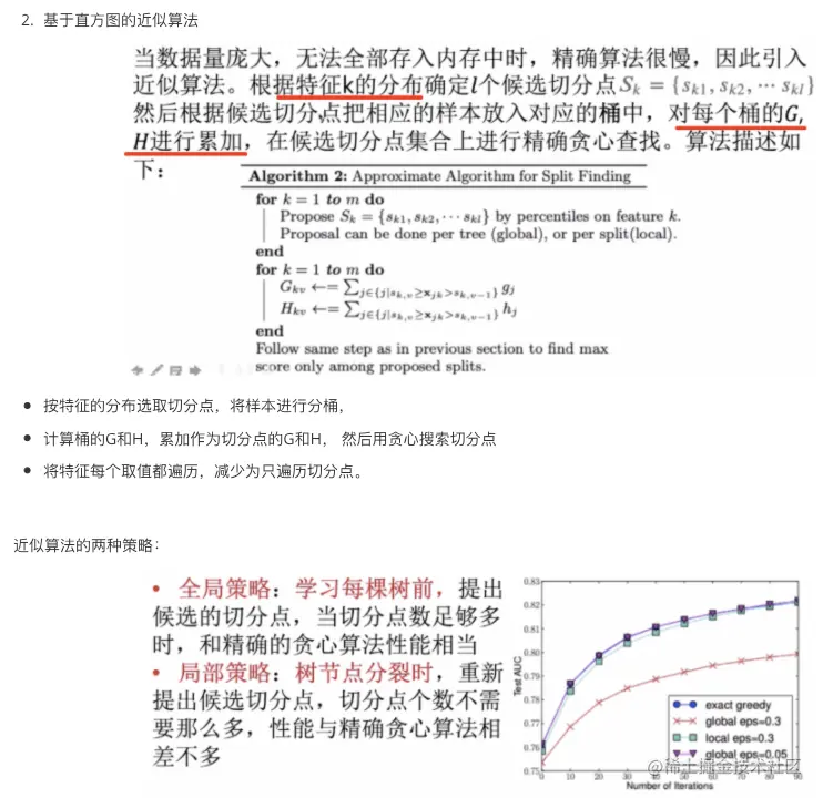 基于直方图的近似:对特征取值进行分桶