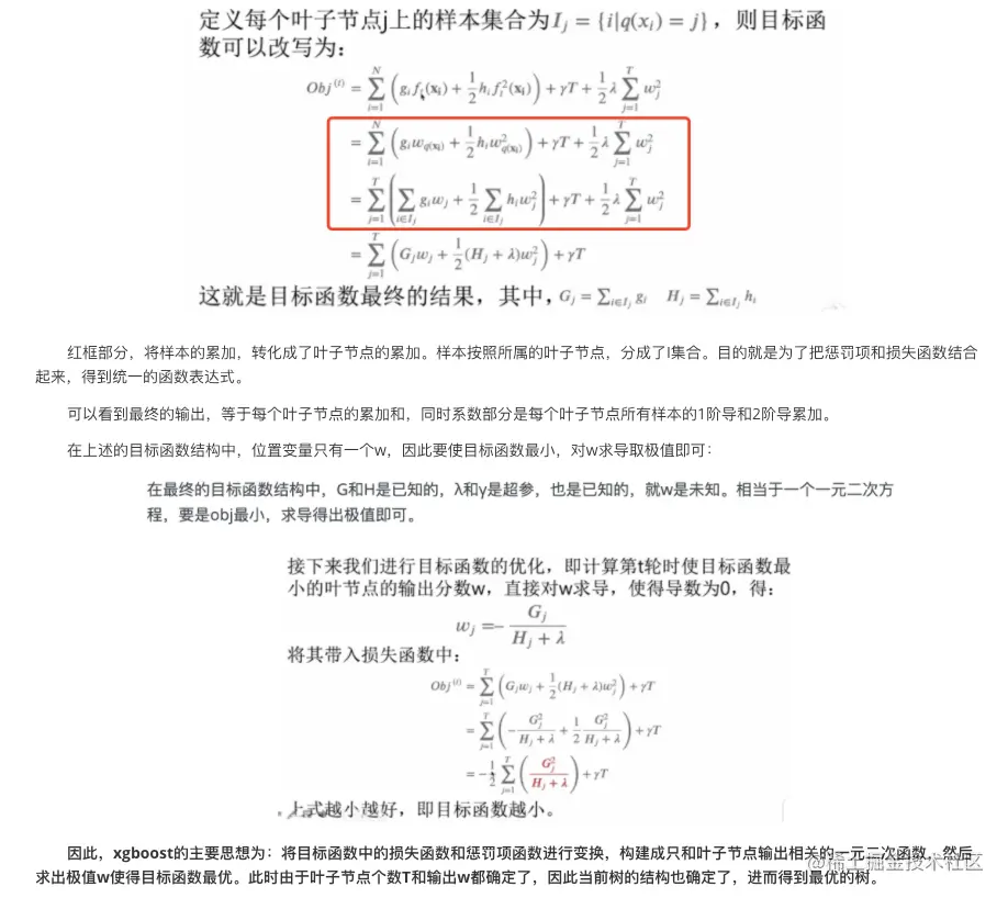 这里w用叶子节点的分数来表示,所以在构建决策树时,只要划分特征时能够得到最终的叶子节点分数满足w,那么就说明划分特征是正确的,最优的操作。