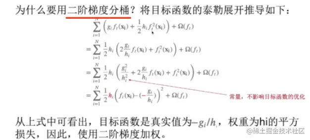 - xgboost是在目标函数上引入正则项,然后泰勒展开推导出w的一元二次方差,最后根据求最优w求出划分节点的表达式,只和一阶导,二阶导有关。进而得出划分节点的策略。