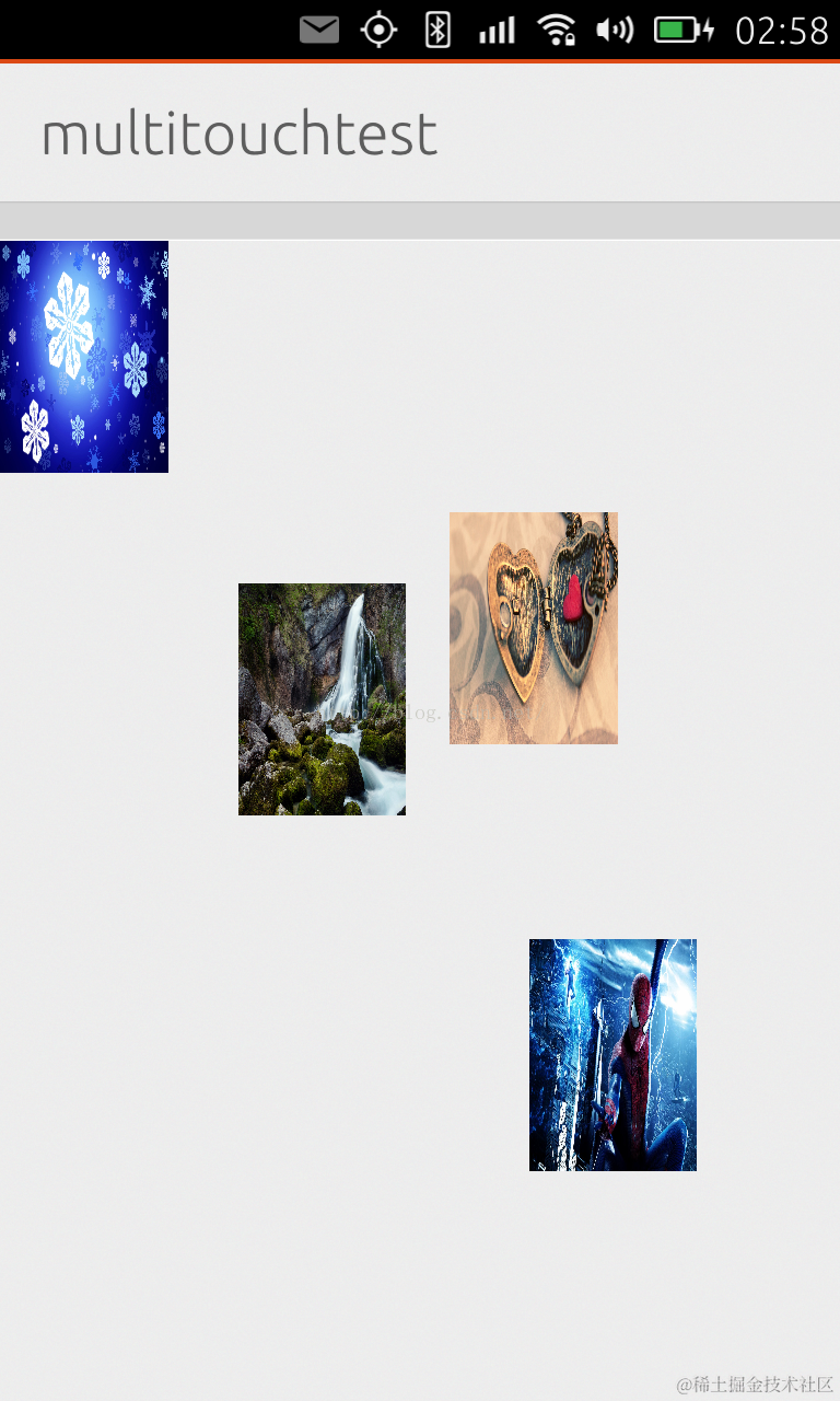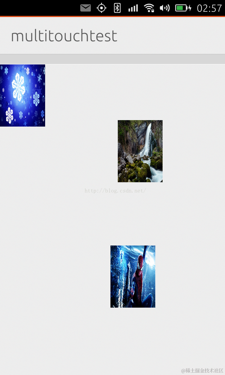 同时3个手指触屏时,我们可以看到3个照片同时出现在屏幕上,并随我们的手指移动: