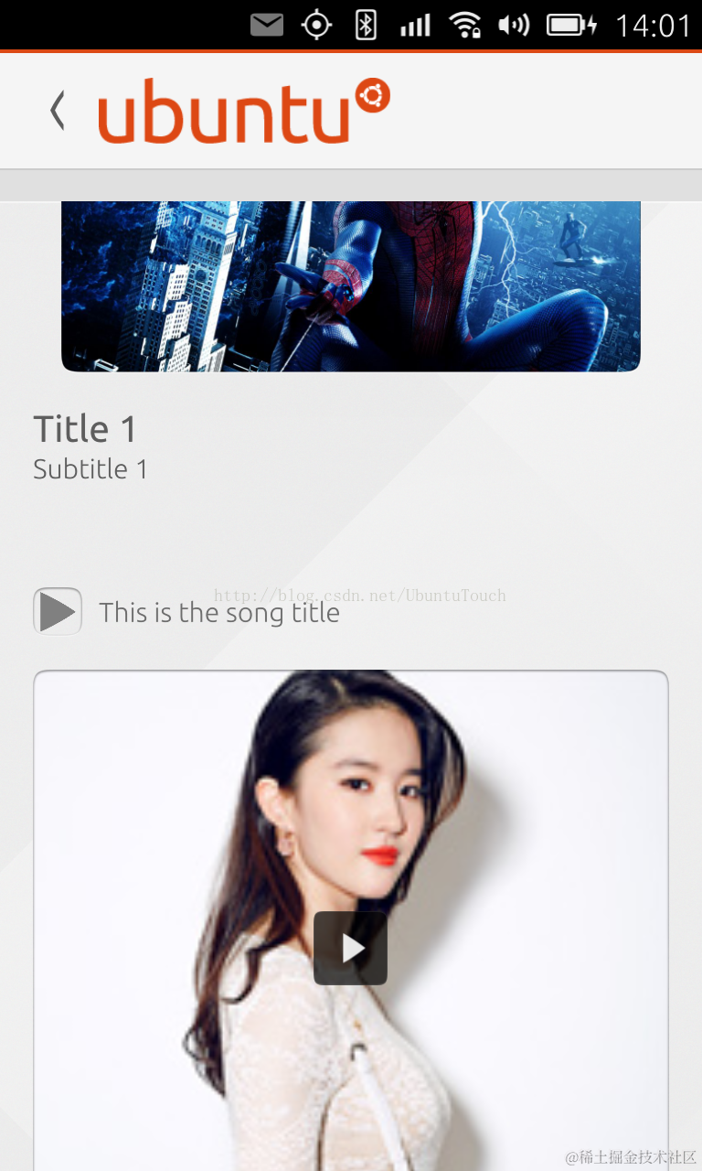 在这里,我们加入了video PreviewWidget中必须的两项“source"及“screenshot”。在实践中,我发现如果没有定义“screenshot”,该视频将不会被正确显示和播放。这一项的设定非常重要。在这里我们利用了一个我们本地的图片来显示该视频的一个截图(尽管不太精确)。