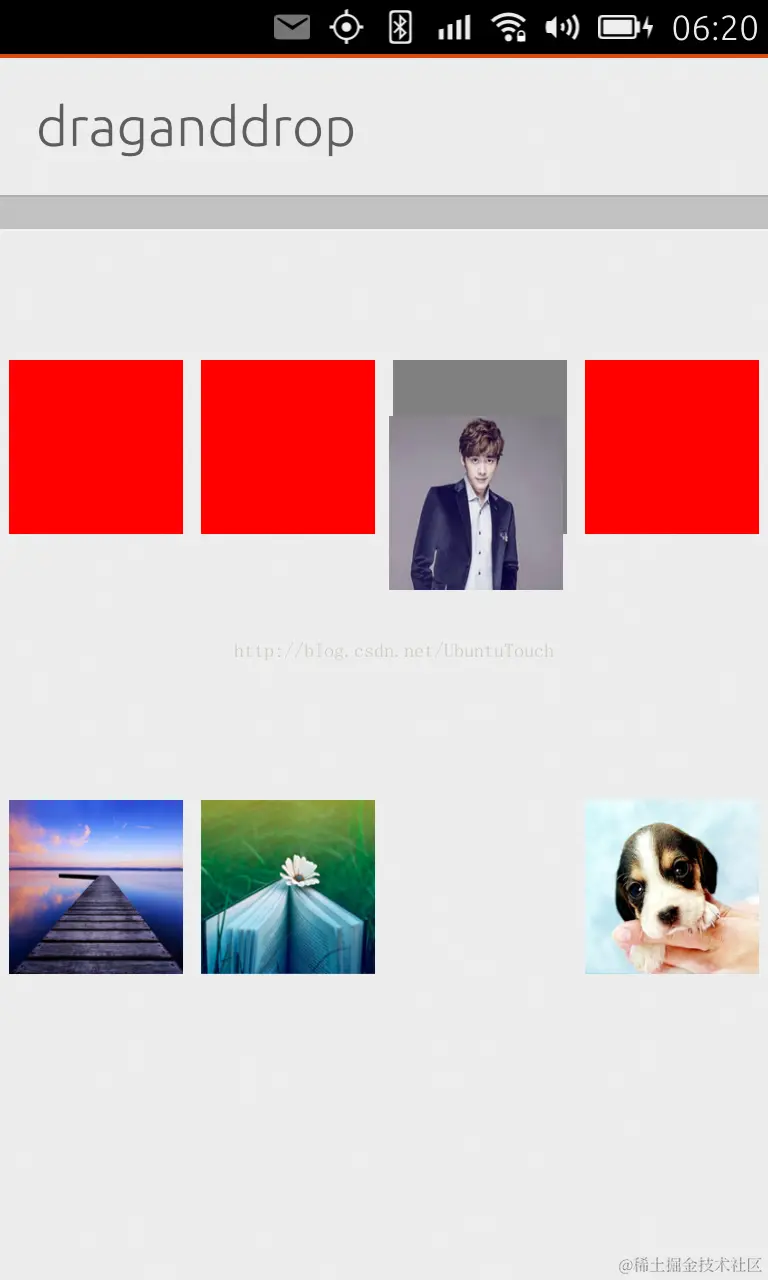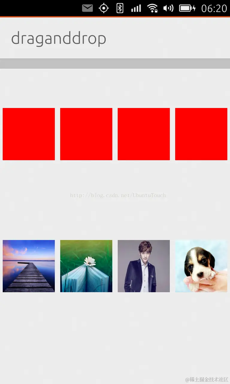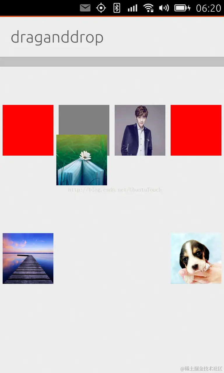 在这个设计中,我们显示了一个图片。这个图片是在model中定义的。在mouseArea有drag实际时,我们有意地改变tile的父亲为root而不是先前的mouseArea。当鼠标在release时,如果有一个DropArea的话,它的地方将被自动放置root所展示的内容,在我们的示例中,也就是一个图片。