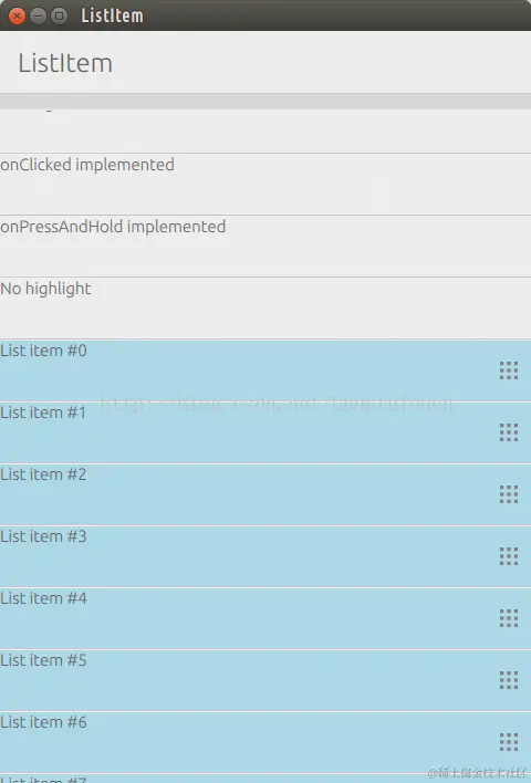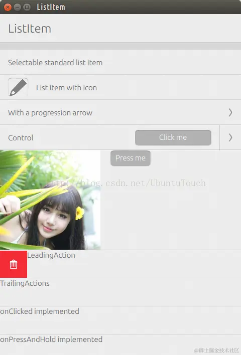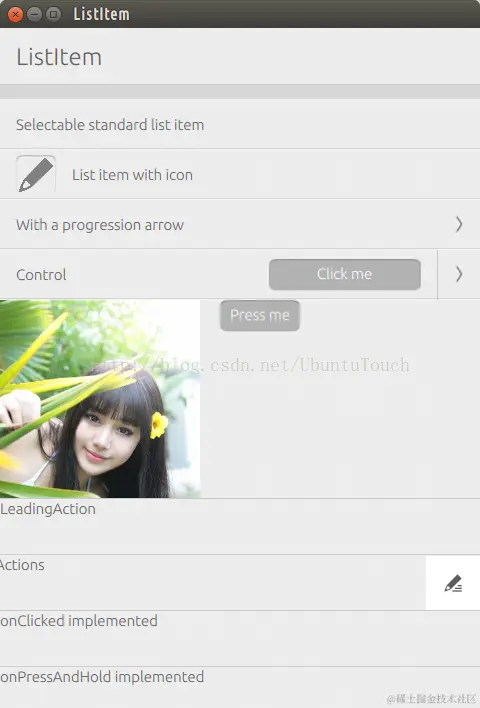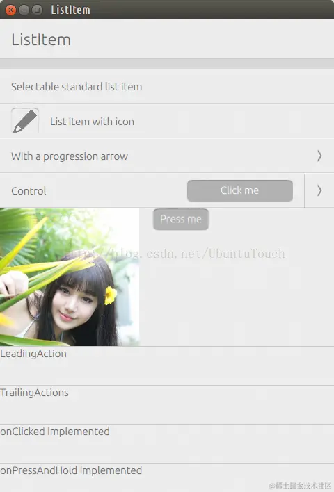 说道ListItem,可能很多人和Ubuntu.Components.ListItems容易搞混。其实ListItem没有任何的layout,也就是说它可以很方便地让我们定制任何一个我们所需要的内容。相反,Ubuntu.Components.ListItems不可以让我们方便地定制我们所需要的高度。它的高度是固定,也有一些适合我们做List及Grid的layout。