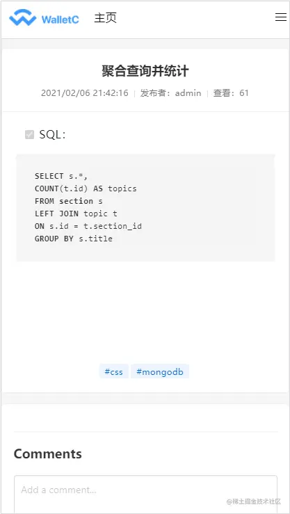 本项目大量借鉴了极光社区项目,在此感谢原作者的无私开源。本项目在其基础上做了一些增删,删除了一些未完成的模块(活动,旅游),新增了评论功能,简化了后端认证与授权功能。最主要的工作是将原项目从零开始开始搭建,各个功能的实现分解成几十步来完成,便于大家更好的学习。