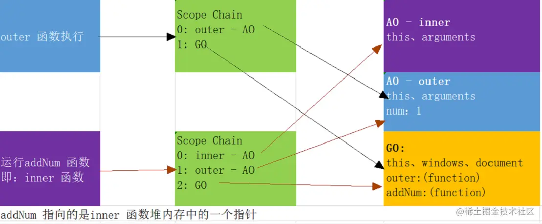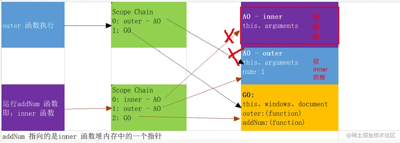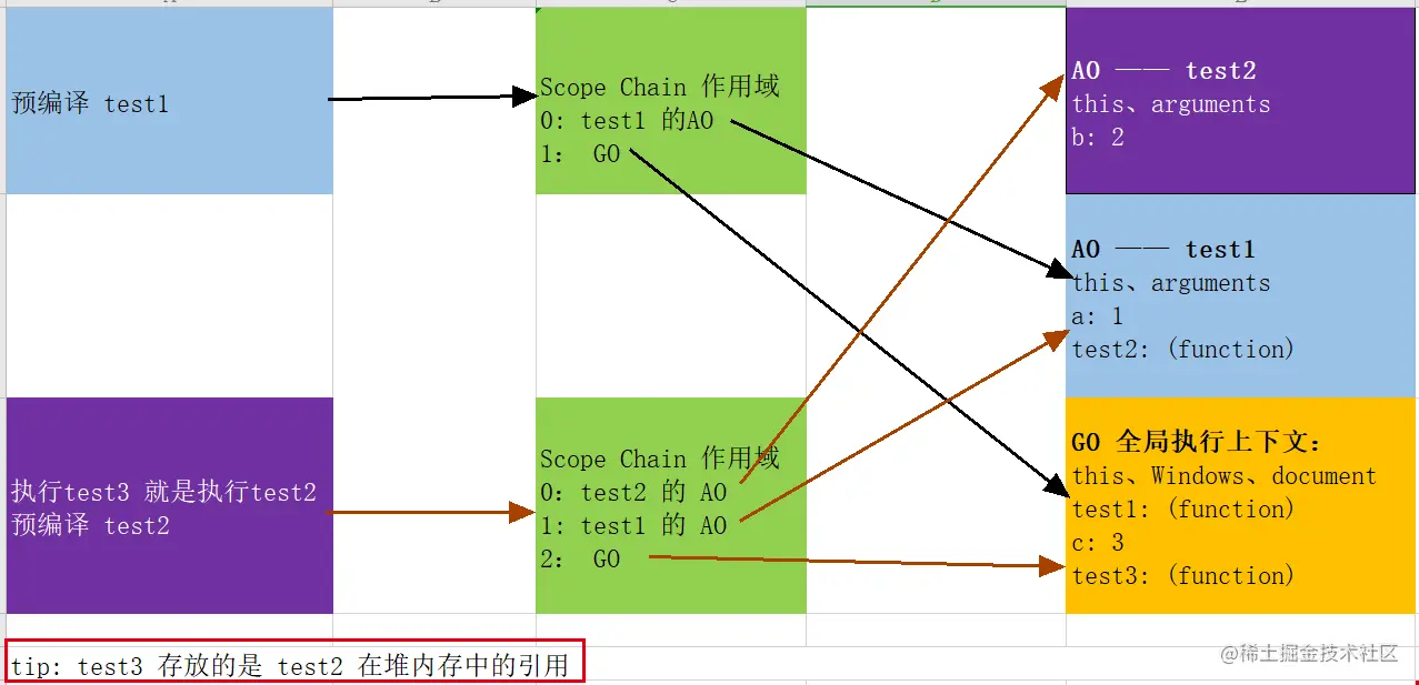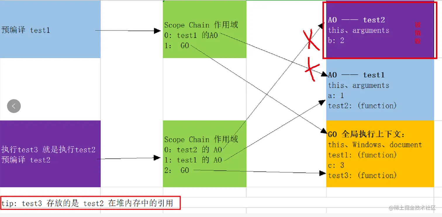 C:由上图可以看出,test1-AO 一直在作用域链上,未被销毁,因此可以在 test2 中去访问 test1-AO 中的变量 a 的值,且为1