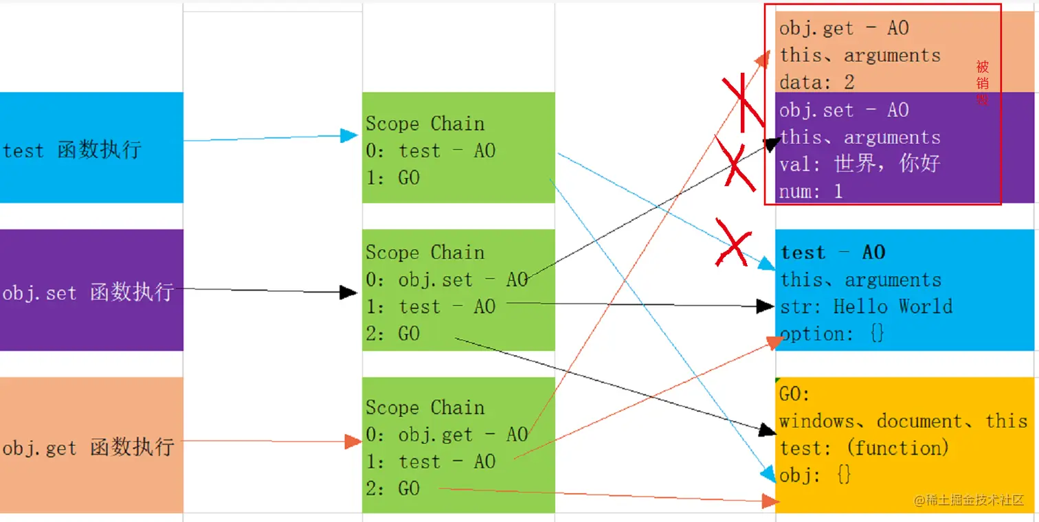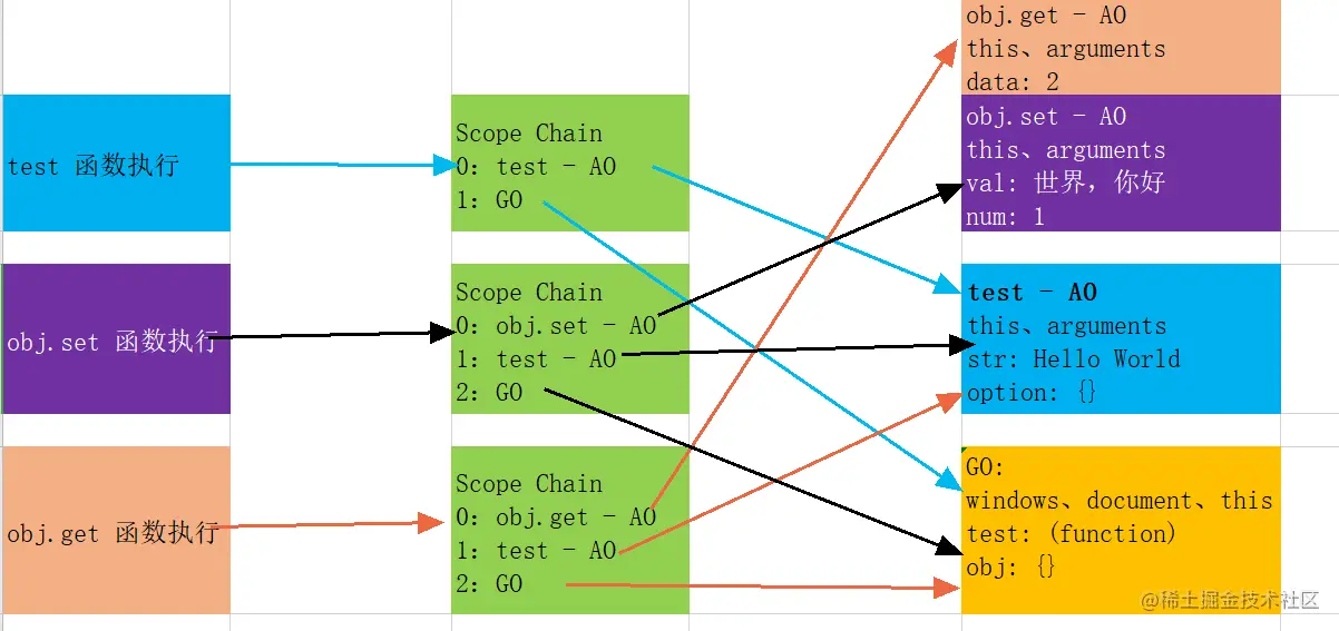 - 执行完 obj.set('世界,你好!'), test-AO 中变量 str 被赋值为:世界,你好!