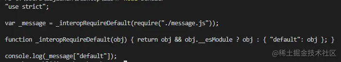 接下来要做的事情,就是用babel对代码进行转换、编译,把代码转换成浏览器可以认识的es5,安装@babel/core,并且引入,这个工具提供给我们一个transformFromAst()方法进行转换,方法接收三个参数,第一个参数是ast,第二个参数可以填null,第三个参数是配置项(注意配置项里的"@babel/preset-env"也需要手动安装),这个方法会把ast抽象语法树转换成一个对象并且返回,对象里包含一个code,这个code就是编译生成的,可以在浏览器上直接运行的当前模块的代码,这里可以打印一下code: