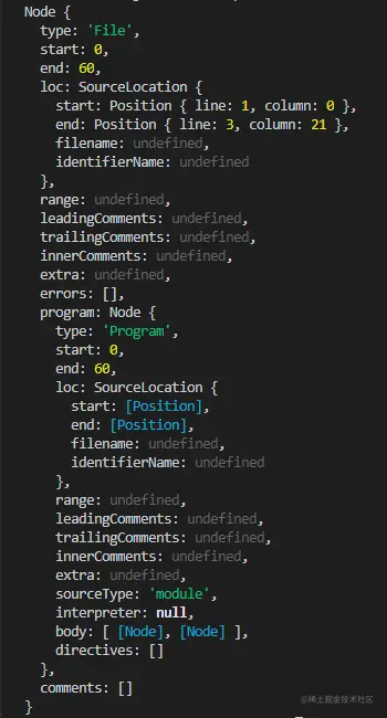 在AST对象中,有一个program字段,在program中,有一个body字段,是我们需要用到的,我们打印一下body,同时再稍微优化一下我们的代码: