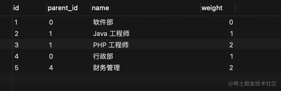 id、parent_id、name、weight等通用字段