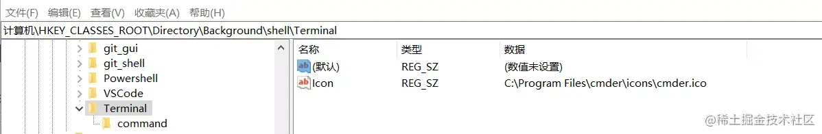 在shell下新建项 Terminal, 这个就是右键菜单的提示文字, 可以参考cmder的