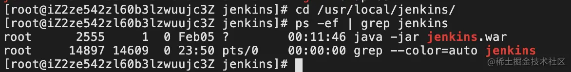 启动成功后,查询jenkins进程