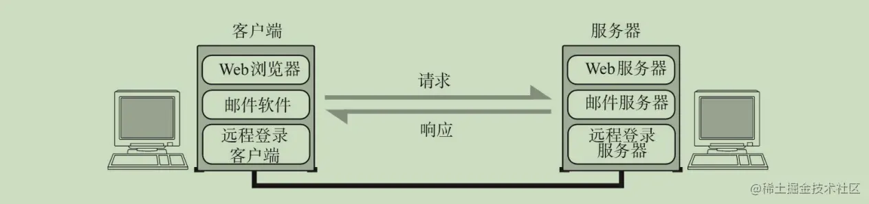 TCP/IP应用的架构绝大多数属于客户端/服务端模型。提供服务的程序叫服务端,接受服务的程序叫客 户端。在这种通信模式中,提供服务的程序会预先被部署到主机上,等待接收任何时刻客户可能发送的请求。