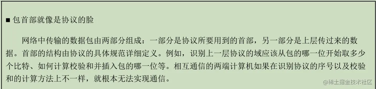 每个分层中,都会对所发送的数据附加一个首部,在这个首部中包含了该层必要的信息,如发送的目标地址以及协议相关信息。通常,为协议提供的信息为包首部,所要发送的内容为数据。