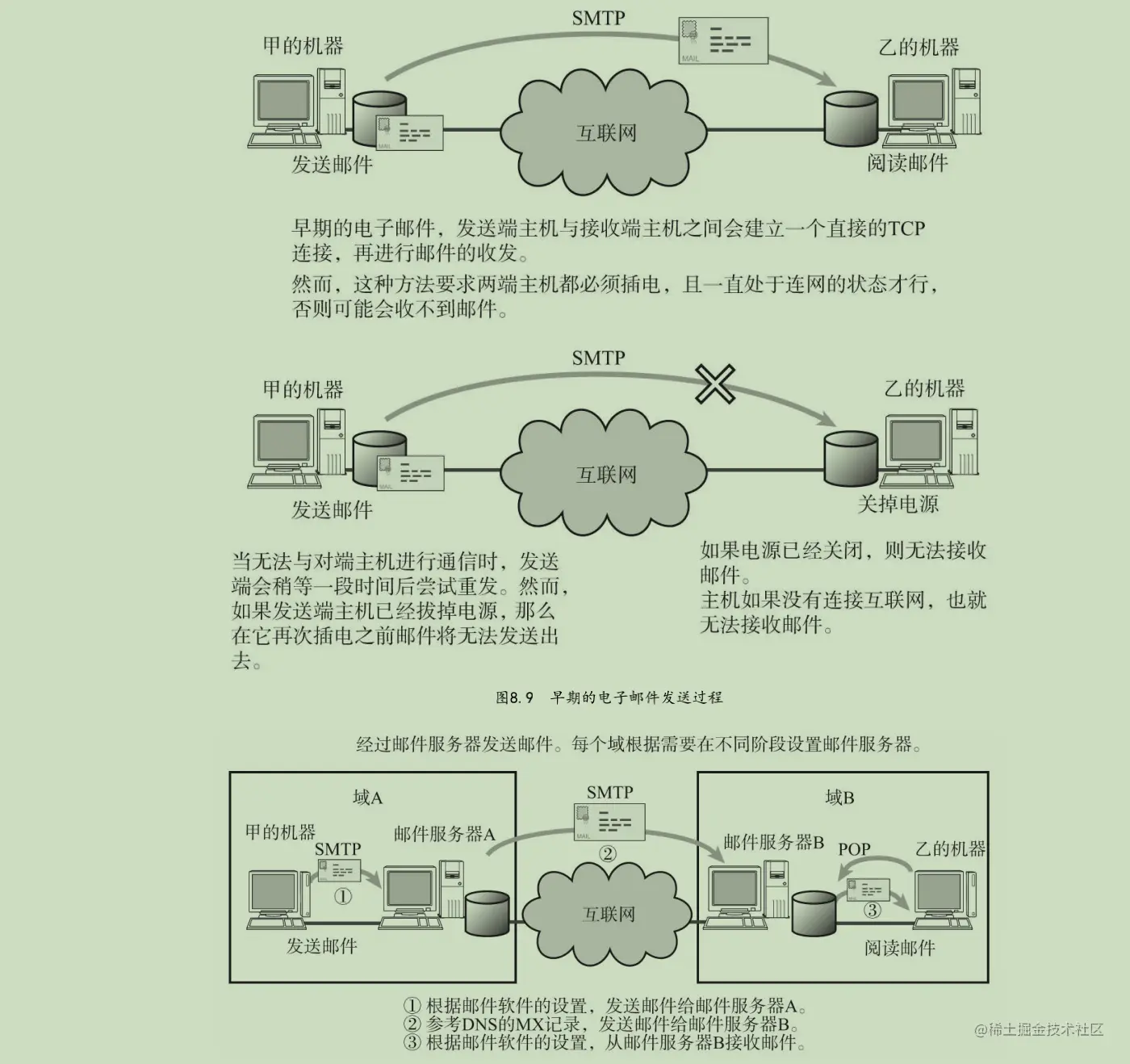 这种方法,在提高电子邮件的可靠性传输上非常有效。但是,互联网应用逐渐变得越发复杂,这种机 制也将无法正常工作。例如,使用者的计算机时而关机时而开机的情况下,只有发送端和接收端都处于插 电并且开机的状态时才可能实现电子邮件的收发。由于日本属于东九时区,和美国之间存在时差。日本的 白天相当于美国的夜晚。如果大家都是只在白天开机,那么日本跟美国之间就根本无法实现收发邮件。由 于互联网是一个连接全世界所有人进行通信的网络,所以这种时差问题就不得不考虑在内。
