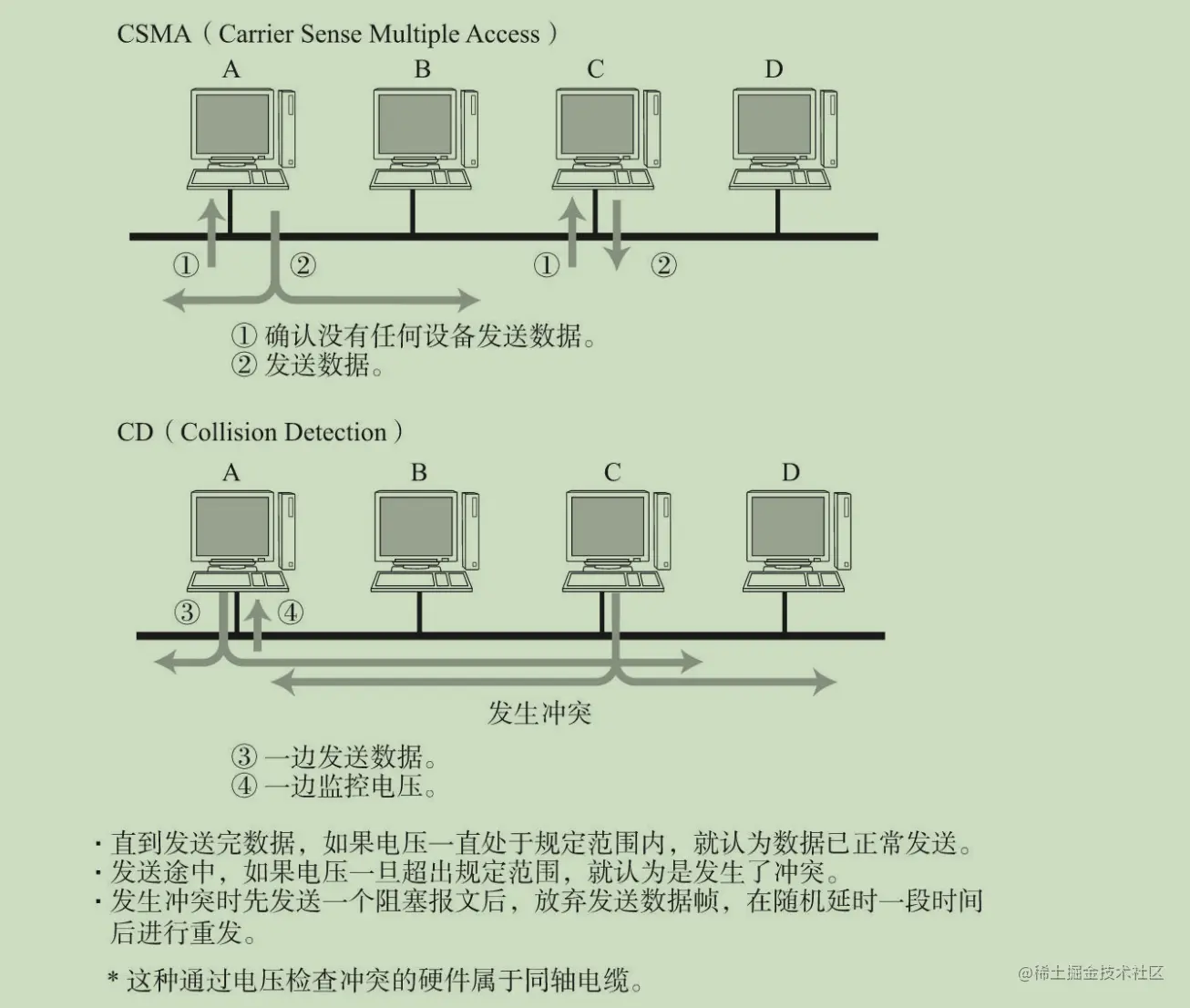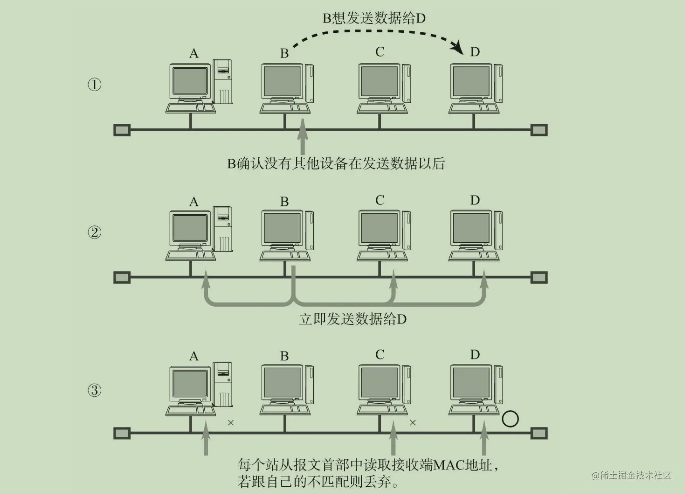 网络接口层(有时人们也将网络接口层与硬件层合并起来称作网络通信层。) 利用以太网中的数据链路层进行通信,因此属于接口层。也就是说,把它当做让NIC起作用的“驱动程序”也无妨。