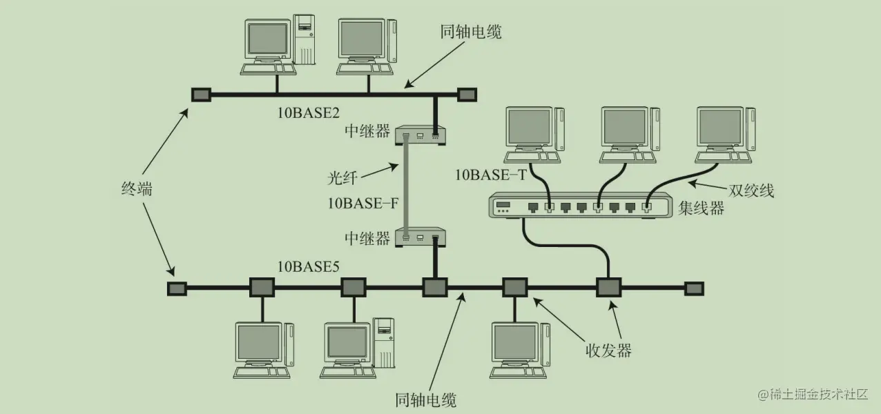 TCP/IP的最底层是负责数据传输的硬件。这种硬件就相当于以太网或电话线路等物理层的设备。关于它的内容一直无法统一定义。因为只要人们在物理层面上所使用的传输媒介不同(如使用网线或无线), 网络的带宽、可靠性、安全性、延迟等都会有所不同,而在这些方面又没有一个既定的指标。总之, TCP/IP是在网络互连的设备之间能够通信的前提下才被提出的协议。