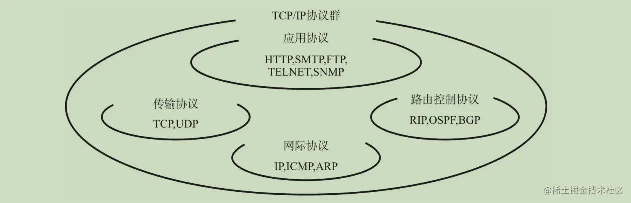 从字面意义上讲,有人可能会认为TCP/IP是指TCP与IP两种协议。实际生活当中有时也确实就是指这两种协议。然而在很多情况下,它只是利用IP进行通信时所必须用到的协议群的统称。具体来说,IP或 ICMP、TCP或UDP、TELNET或FTP、以及HTTP等都属于TCP/IP的协议。它们与TCP或IP的关系紧密,是互联网必不可少的组成部分。