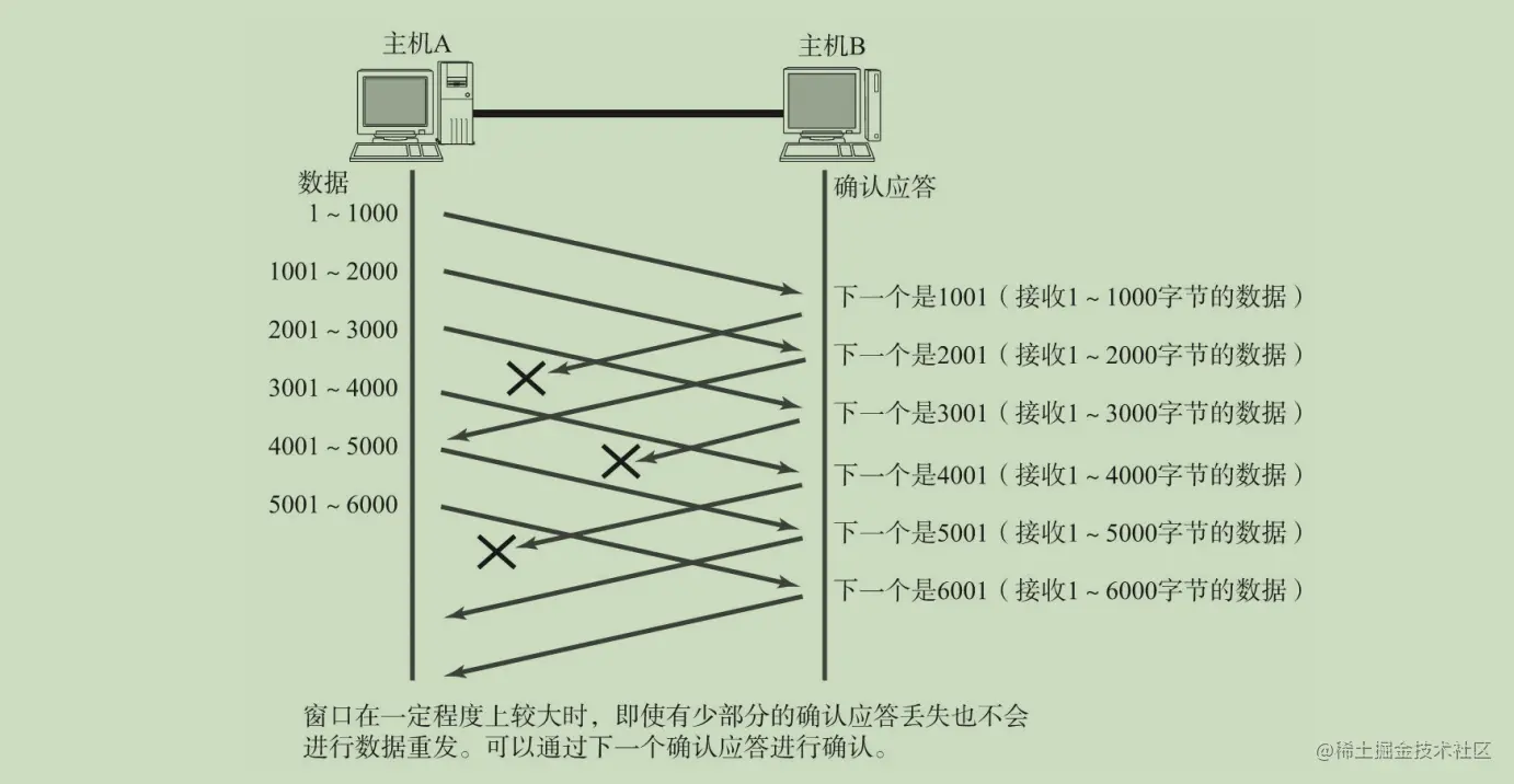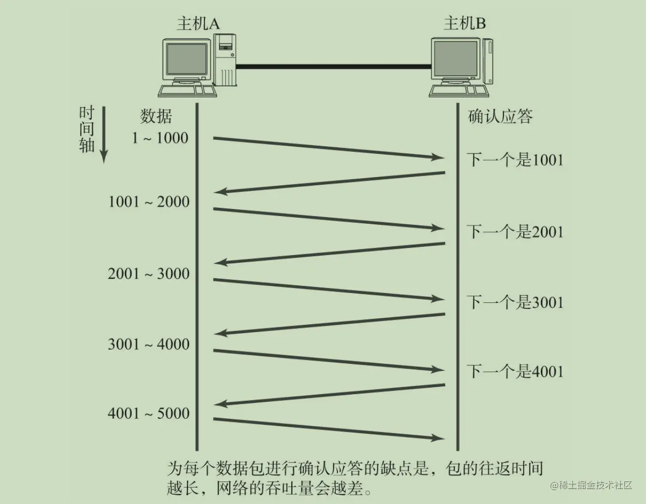 首先,为了在发送端调节所要发送数据的量,定义了一个叫做“拥塞窗口”的概念。于是在慢启动的时候,将这个拥塞窗口的大小设置为1个数据段(1MSS)(连接建立以后即刻从1MSS开始进行慢启动的话, 通过卫星通信等手段提高通信吞吐量所耗的时间会比较长。为此,有时也会将慢启动的初始值设置大于 1MSS的值。具体来说,MSS的值小于1095字节时最大为4MSS,小于2190字节时最大为4390字节,超过2190字 节时最大值大于2MSS。以太网的标准MSS值为1460字节,因此慢启动的初始值从4380字节【3MSS】开始就可 以。) 发送数据,之后每收到一次确认应答(ACK),拥塞窗口的值就加1。在发送数据包时,将拥塞窗 口的大小与接收端主机通知的窗口大小做比较,然后按照它们当中较小那个值,发送比其还要小的数据 量。