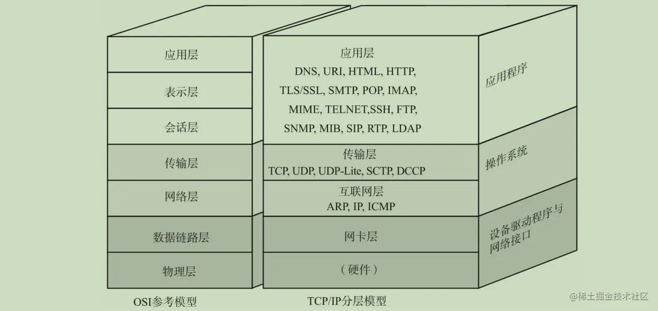 TCP/IP分层中的互联网层与传输层的功能通常由操作系统提供。尤其是路由器,它必须得实现通过互 联网层转发分组数据包的功能。