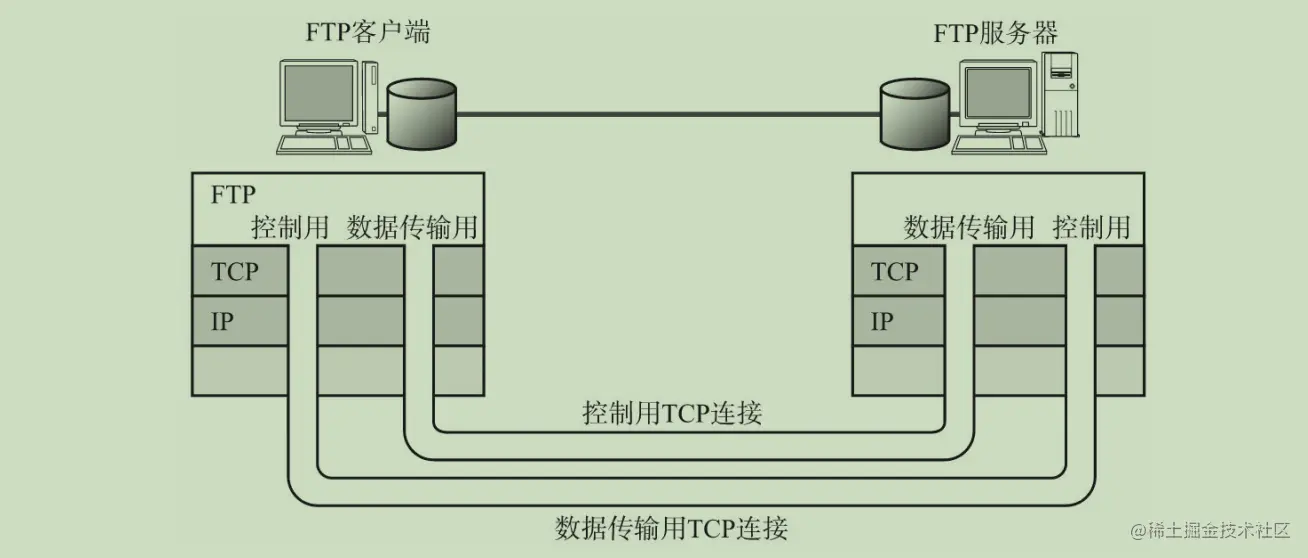 FTP是通过怎样的机制才得以实现文件传输的呢?它使用两条TCP连接:一条用来控制,另一条用于数据【文件】的传输。