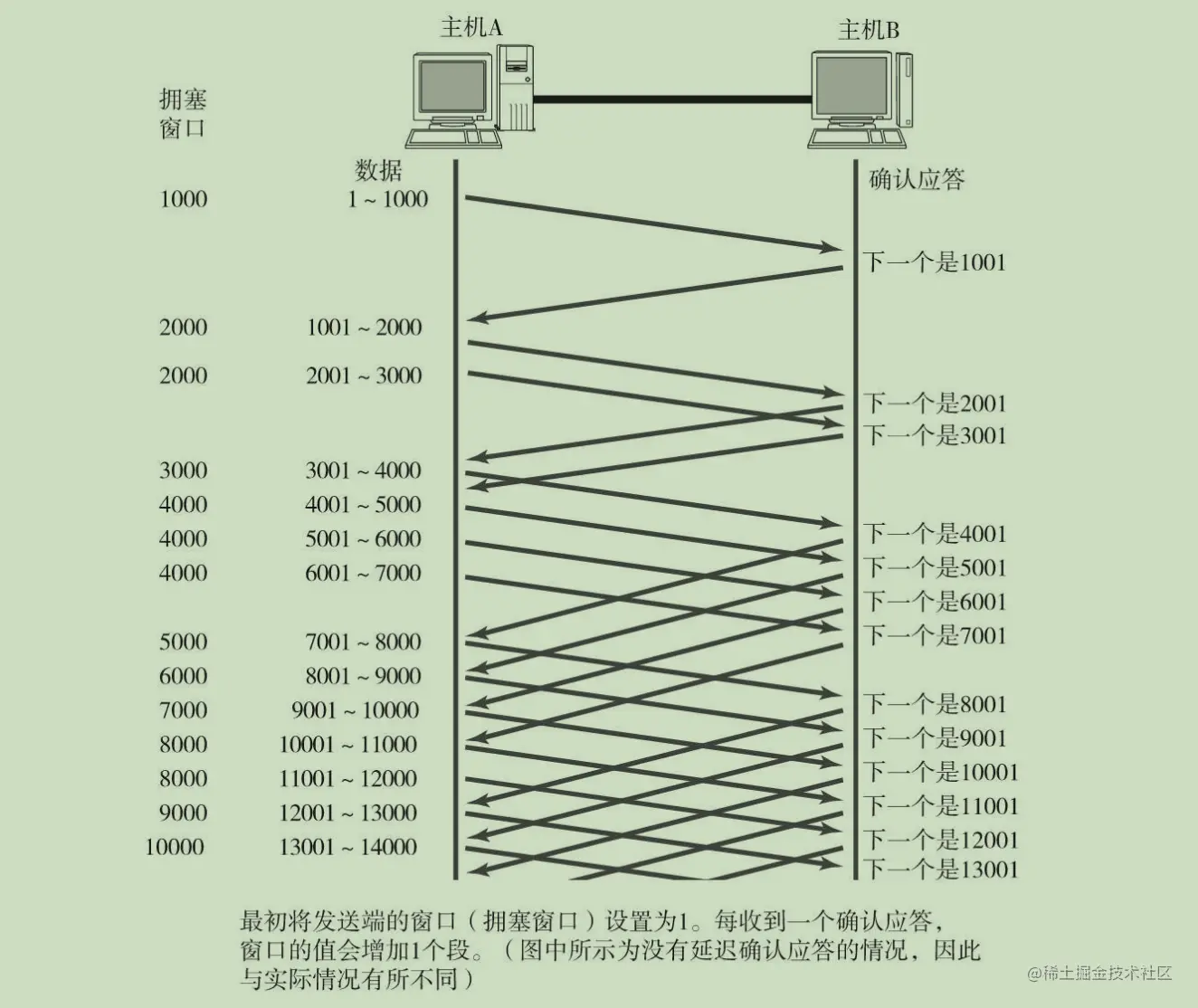 TCP为了防止该问题的出现,在通信一开始时就会通过一个叫做慢启动的算法得出的数值,对发送数 据量进行控制。
