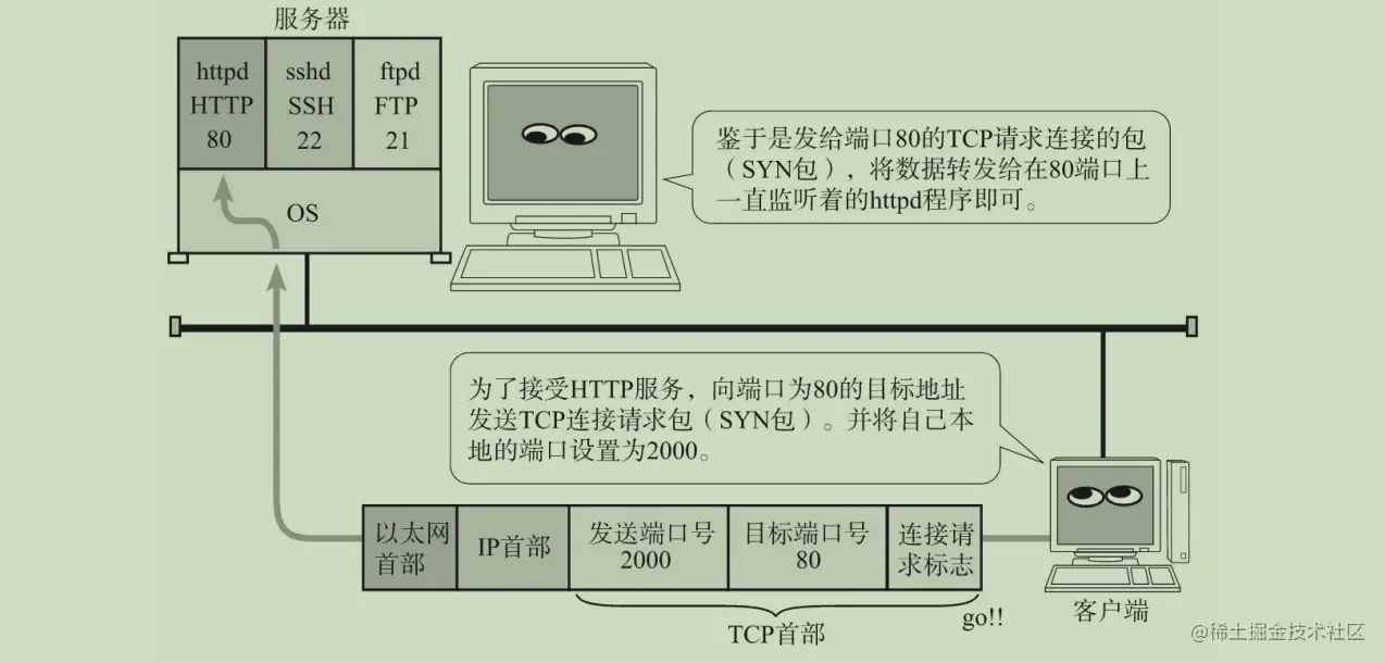 传输层最主要的功能就是能够让应用程序之间实现通信。计算机内部,通常同一时间运行着多个程序。为此,必须分清是哪些程序与哪些程序在进行通信。识别这些应用程序的是端口号。