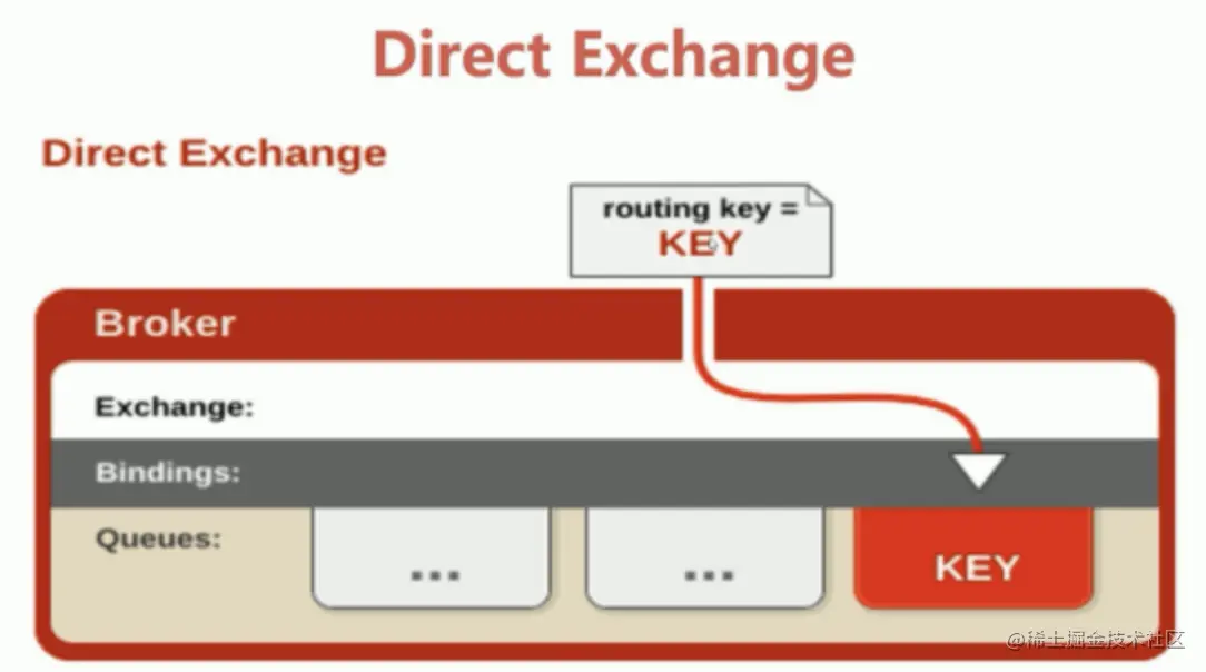 直连交换机,完全匹配路由key,所有发送到direct exchange的消息会被转发到routeKey中指定的queue中。消息传递时,routeKey必须要完全匹配才会被队列接手,否则消息会被抛弃。