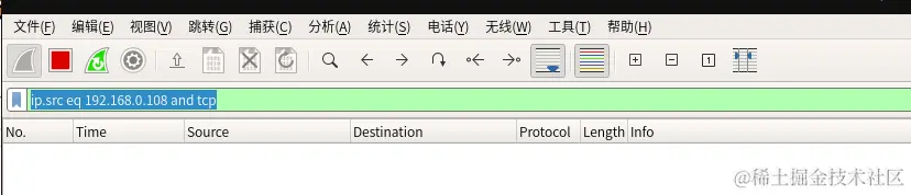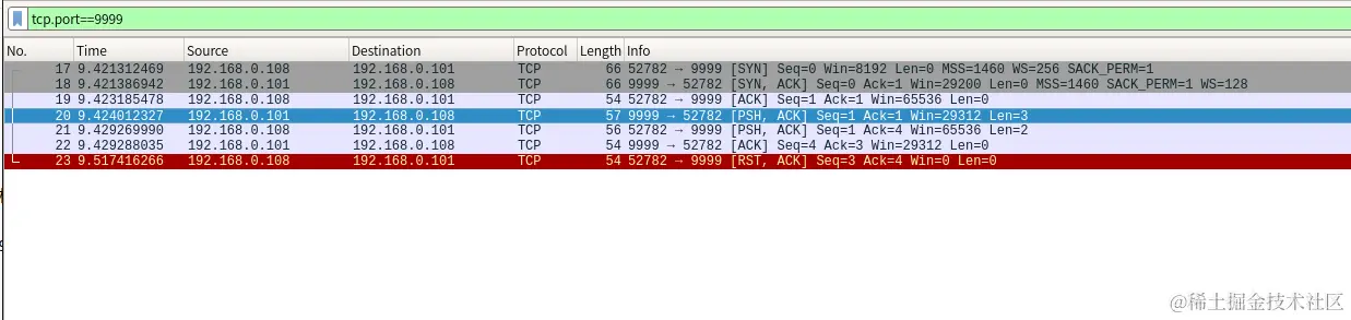 我们可以通过工具wireshark抓包一下,详细的分析三次握手包,但是由于wireshark实在强大,见什么捕什么,所以他也提供了非常灵活的过滤功能,我们可以让他只显示原地址和目的地址的数据包,就像下面这样。