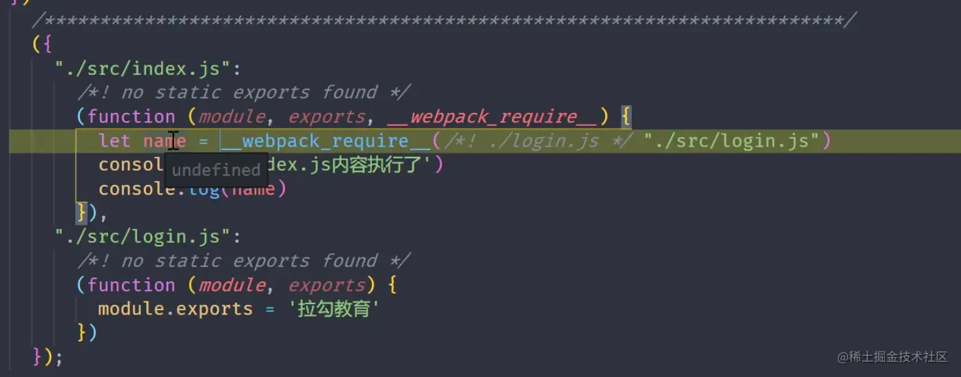 - 模块的加载关键代码(在__webpack_require__函数里)