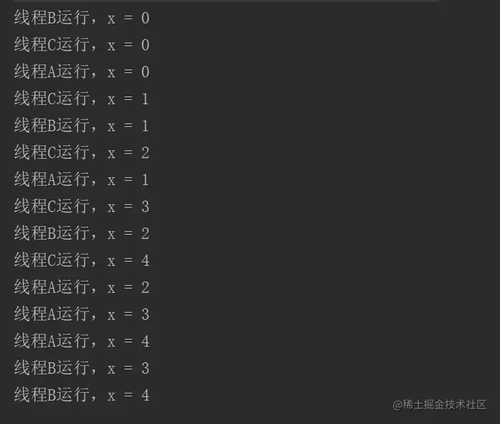 观察结果我们发现,三个线程随机交替执行,取决于cpu的调度。