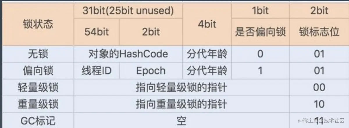 锁也分不同状态,JDK6之前只有两个状态:无锁、有锁(重量级锁),而在JDK6之后对synchronized进行了优化,新增了两种状态,总共就是四个状态:无锁状态、偏向锁、轻量级锁、重量级锁。锁的类型和状态在对象头Mark Word中都有记录,在申请锁、锁升级等过程中JVM都需要读取对象的Mark Word数据。