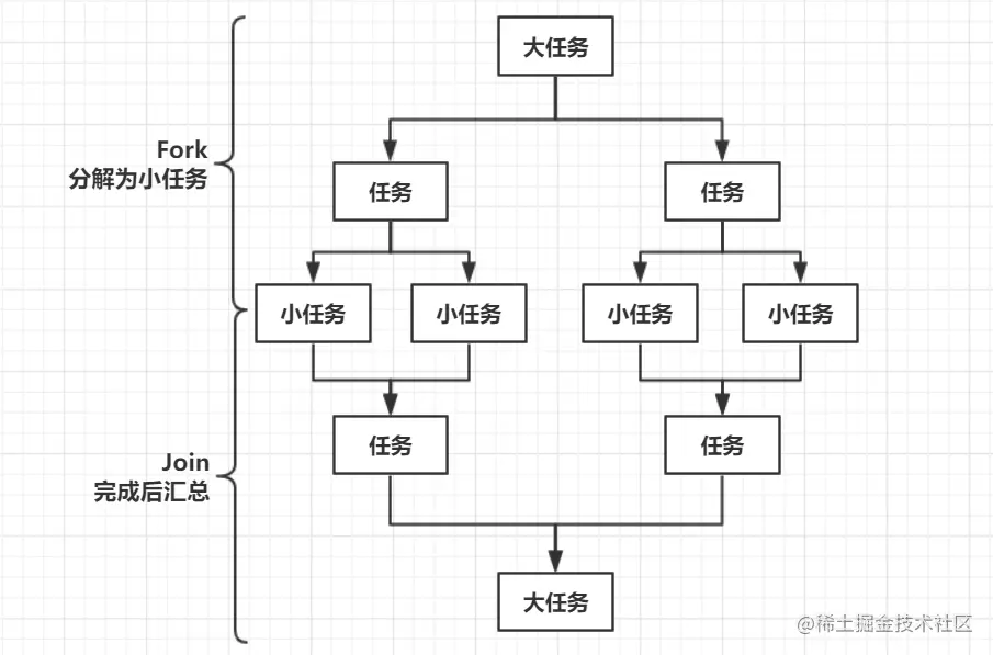 ForkJoinPool是将大任务进行分解,分解到什么程度呢?直到满足ForkJoinPool自定的那个条件,不满足就继续劈两半分解