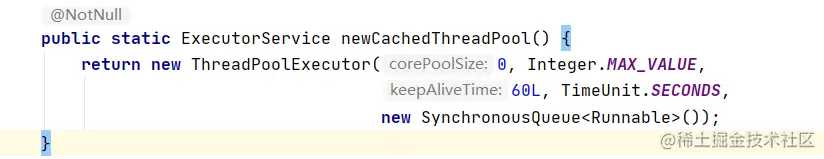 来来来,大家来看他的构造就知道啦,这玩意没有核心线程,而最大线程数为Integer.MAX_VALUE,存活时间时60S,队列用的是SynchronousQueue,想想这几个组合在一起是什么效果呢?来一个任务就开启一个线程(前提是线程池里没有空闲的线程),线程空闲60S就归还,循环往复