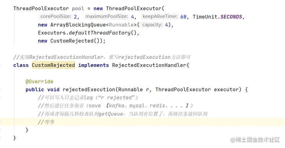 - DiscardOldestPolicy:直接把队列的第一个任务给干掉,然后把新任务加进来,我直接好家伙,那任务不就丢了吗,慎用慎用