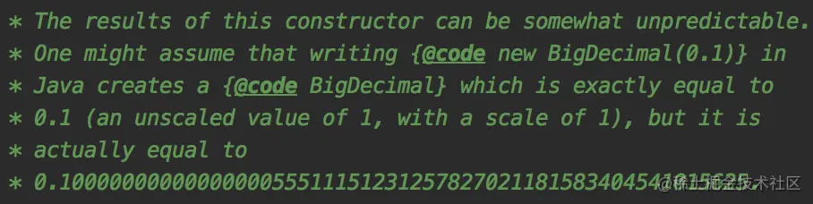 jdk中BigDecimal的构造方法上有这样一段描述: